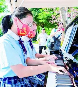 在菽庄花园,从成都来厦旅游的陈先生一家驻足聆听钢琴演奏,学琴5年的女儿跃跃欲试。陈先生说,没想到鼓浪屿不仅有音乐会,而且真的有很多钢琴演奏可以随时听到。“以后想起鼓浪屿,最深的印象就是一路上偶遇这么多钢琴演奏,很美好。”